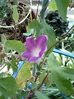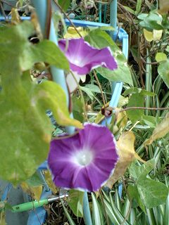 秋晴れの日差しには、似合わないかもしれないけど まだまだ頑張って咲いています。 我が家の朝顔。